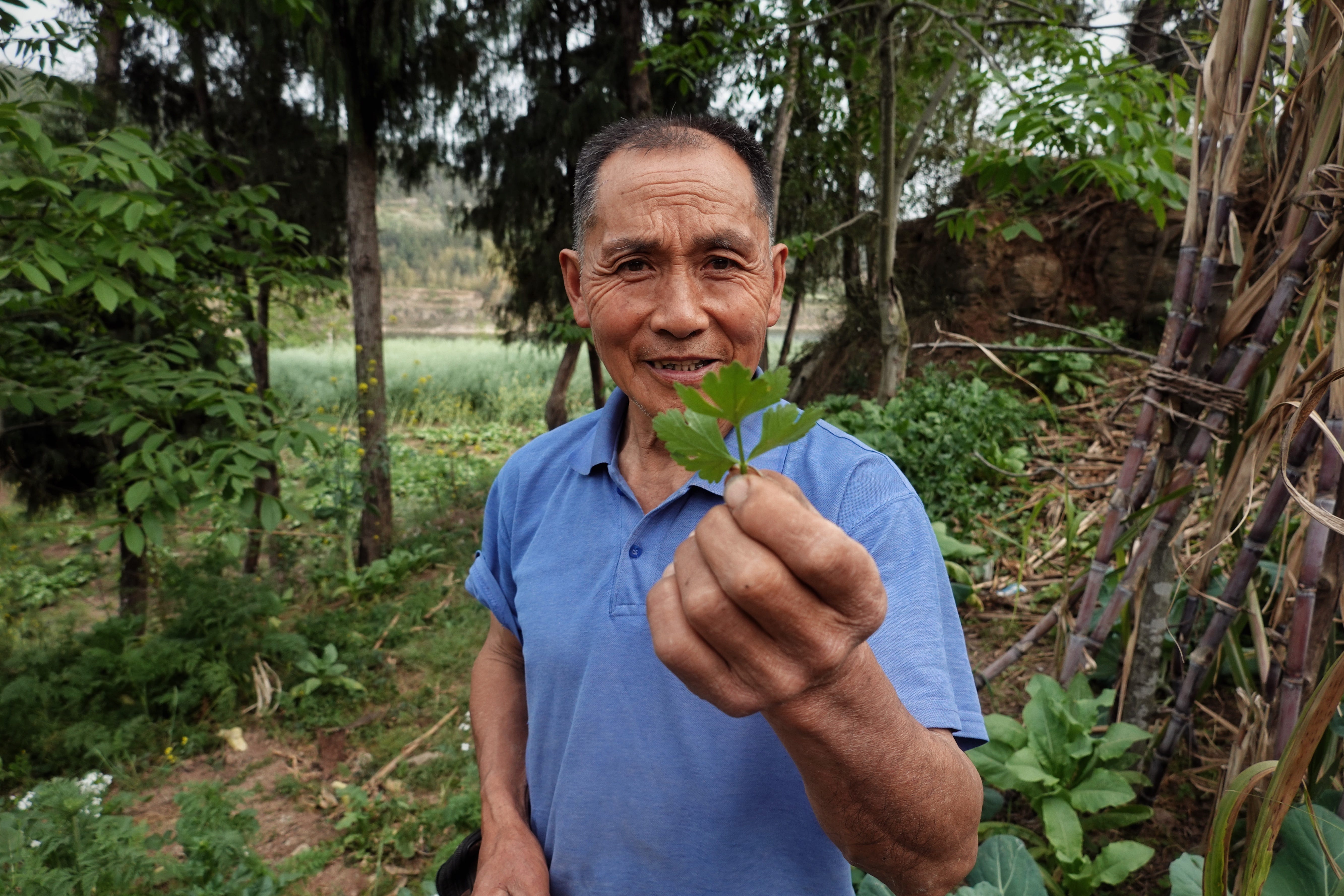 And then I looked again at the portraits I had taken in Qitian, and thought how strange, if not outright wrong, that the photograph of Brother Zhang and his ingenious D.I.Y. dehydrator, seen and admired by thousands of people around the world, had yet to be seen by the craftsman himself. That the portrait of Brother He holding up an organically grown celery leaf from his plot, inviting me to appreciate its fragrance, now hangs on the wall of my student dorm in Oxford as one half of a Plot Lines postcard, but not in his own home or that of his children.
