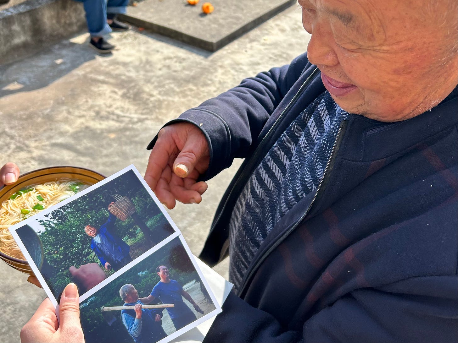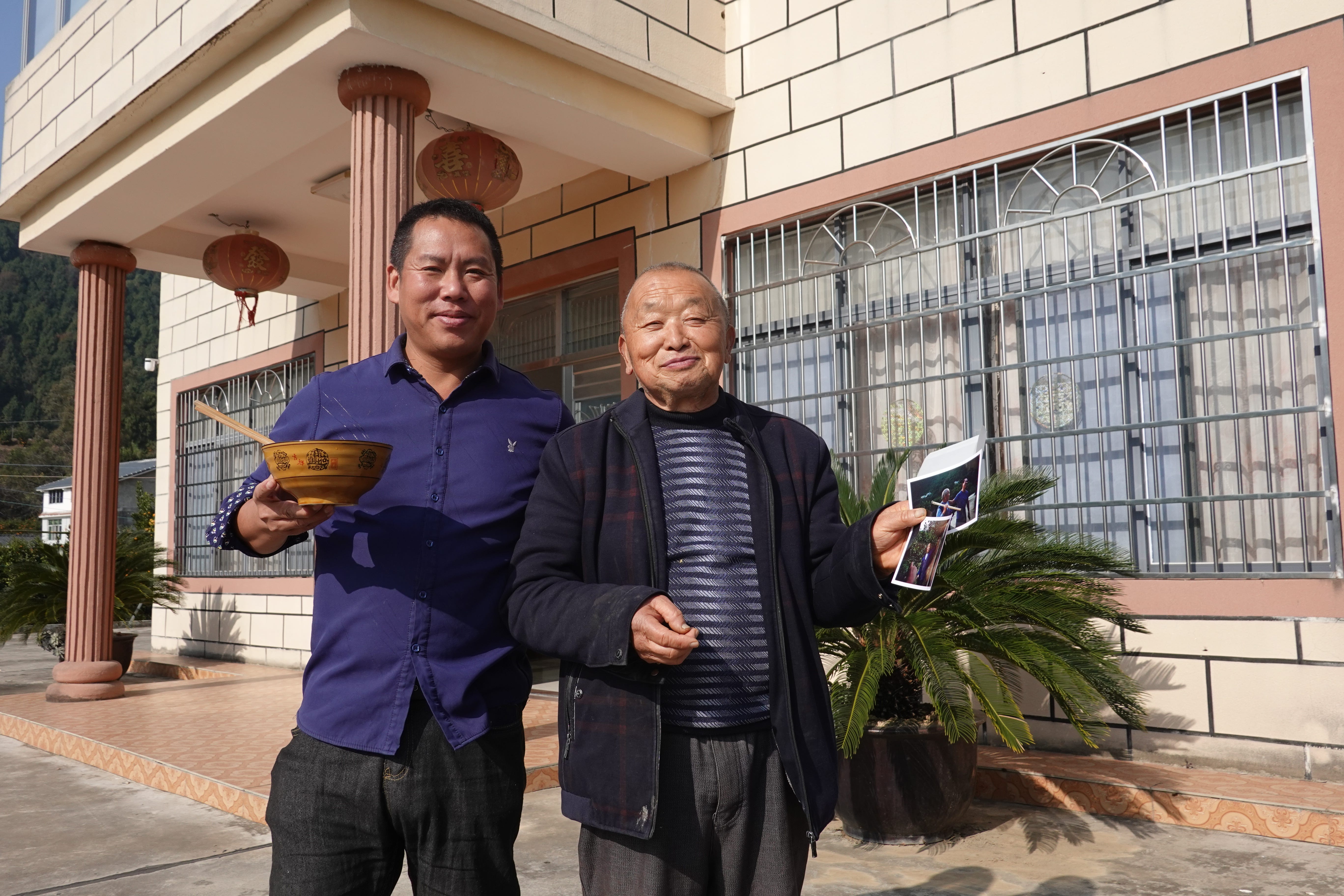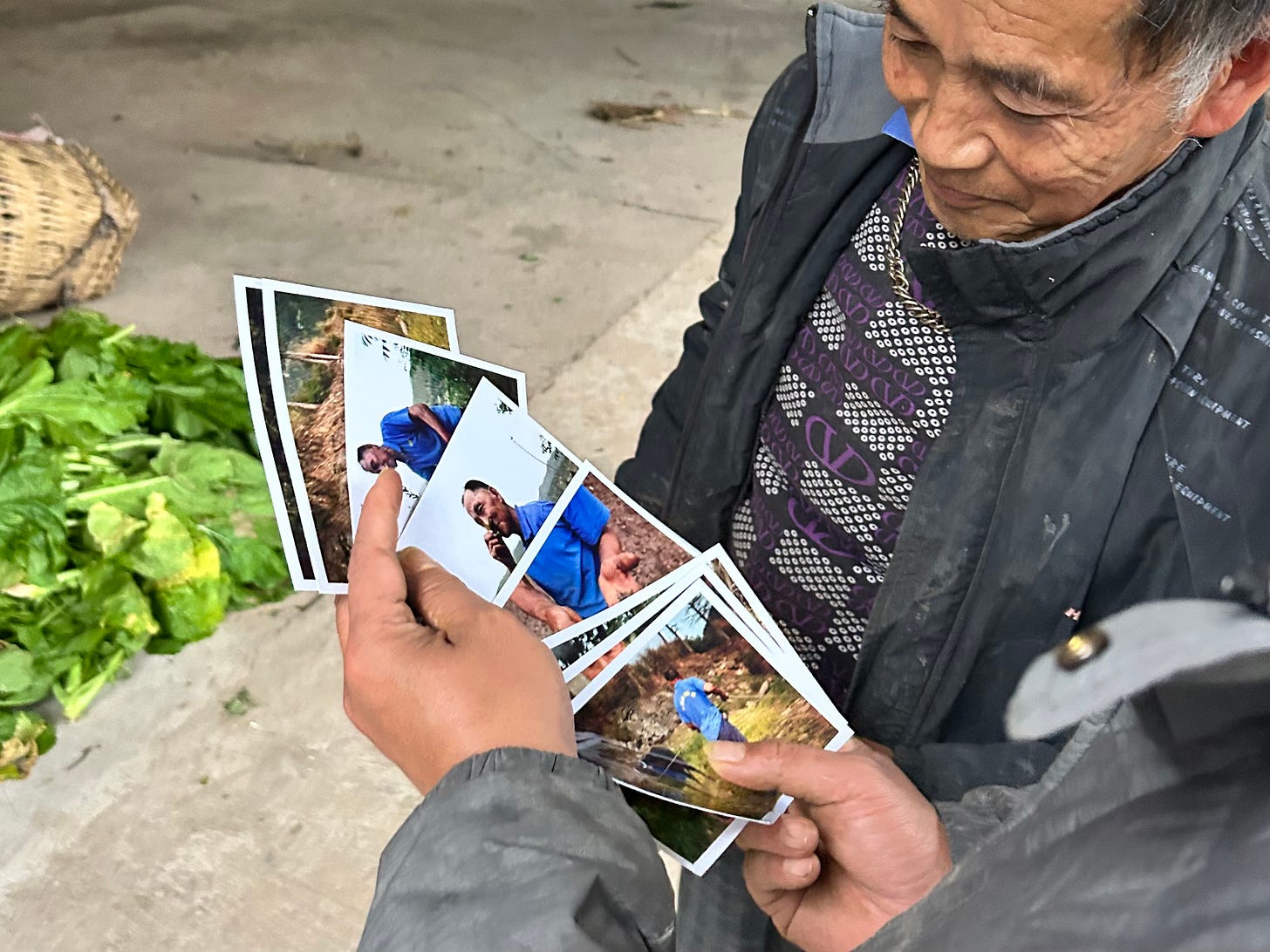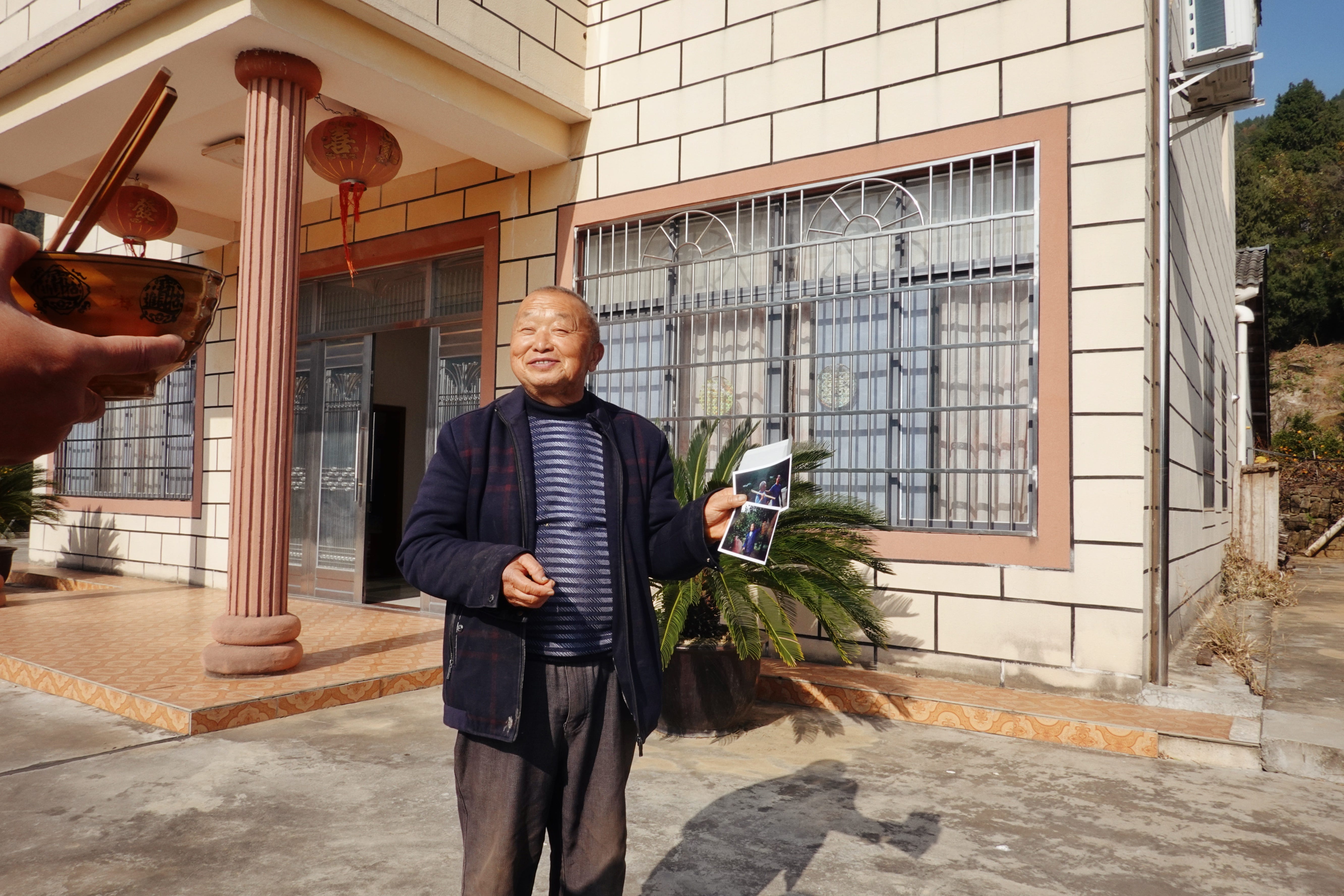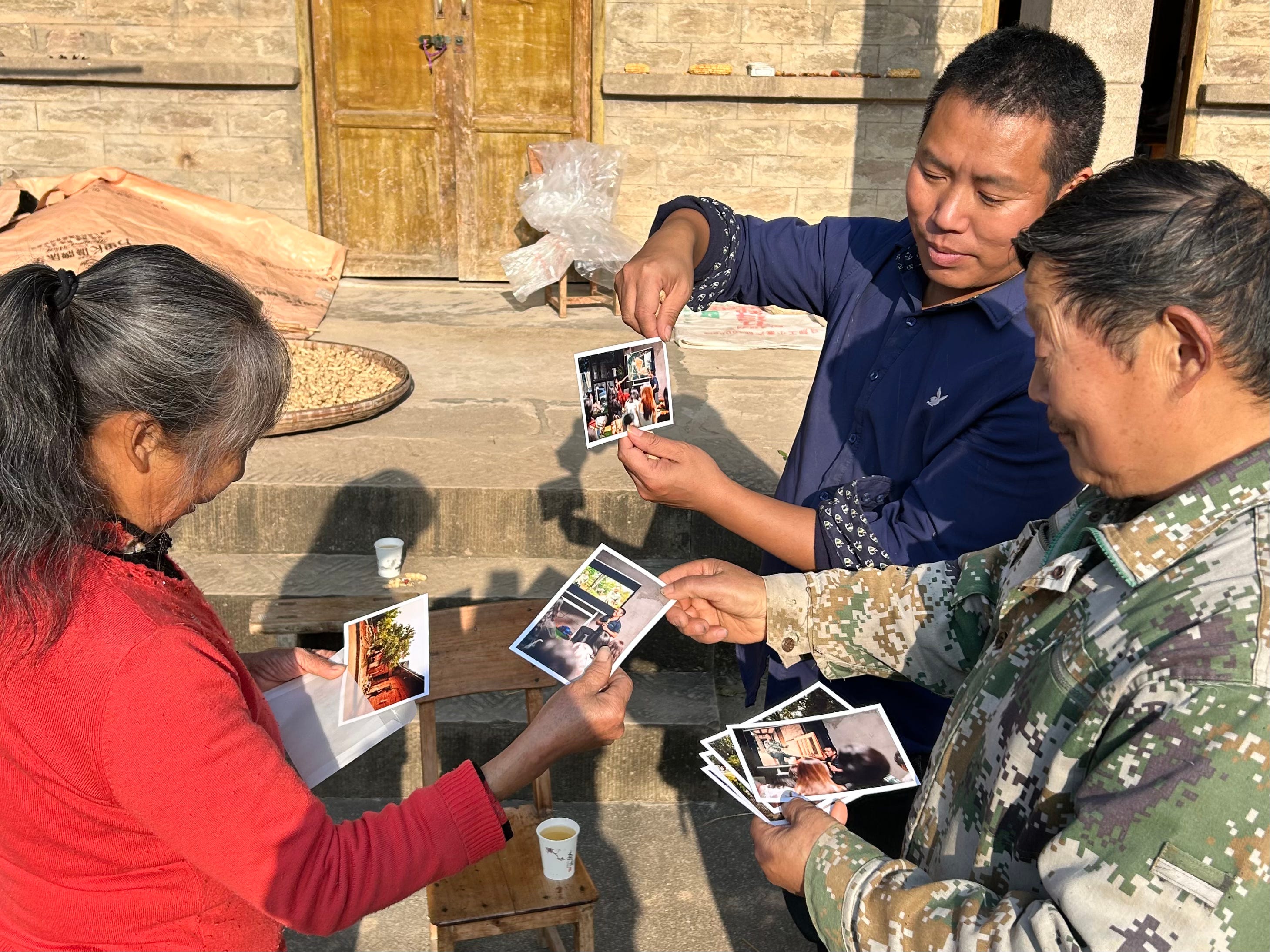 It struck me that elderlies in China, even in rural areas, live such digital lives these days that it must have been years since any of them had a photograph printed out. I noticed that they lingered especially long on photos of themselves together with their loved ones – Sister Yang and Brother Zhang on the photo of them together, and the other Brother Zhang on the one I’d taken of him and Mantou – my local host and now good friend in Qitian, who started the cooperative that these elderly farmers are members of.
