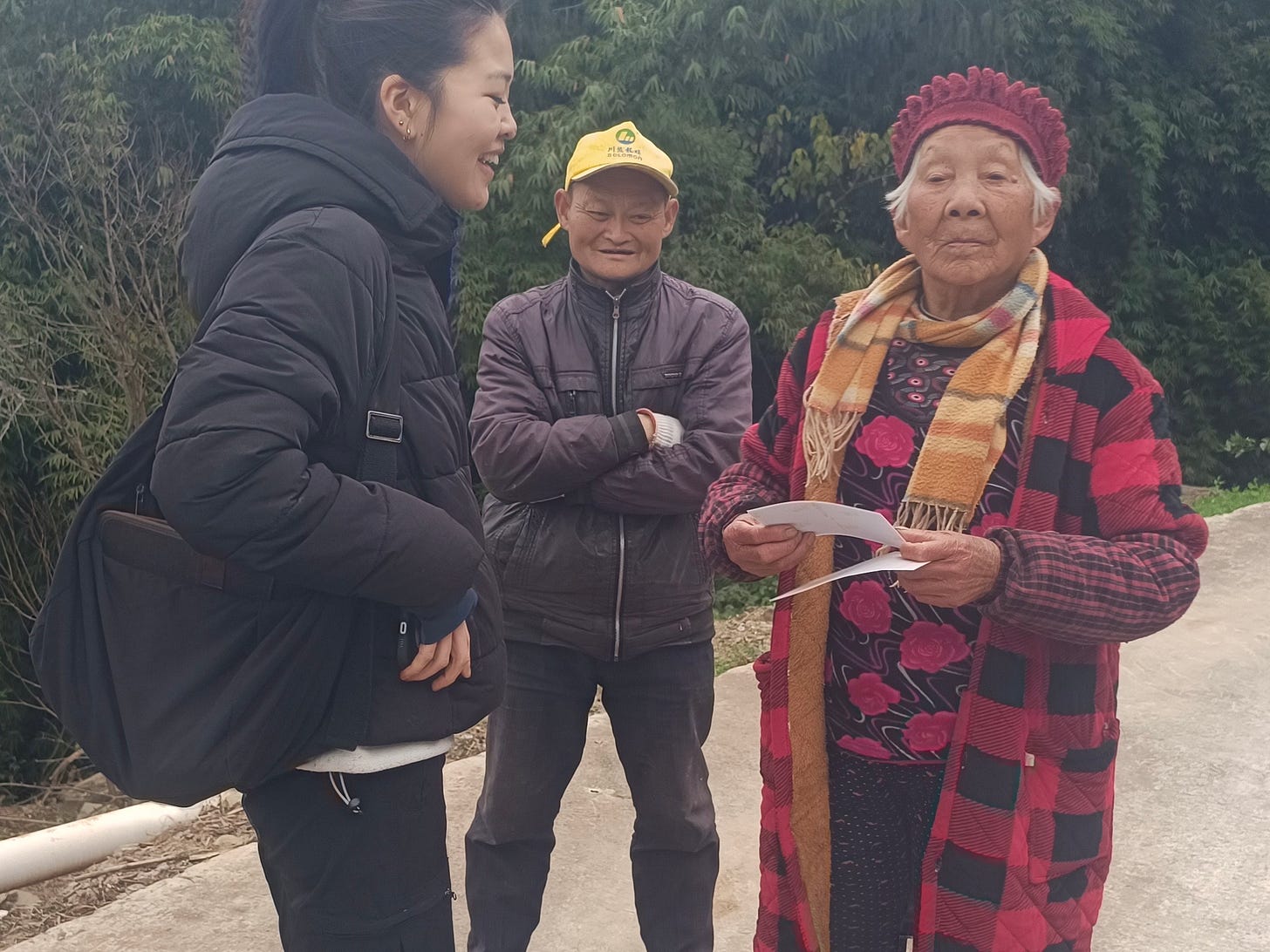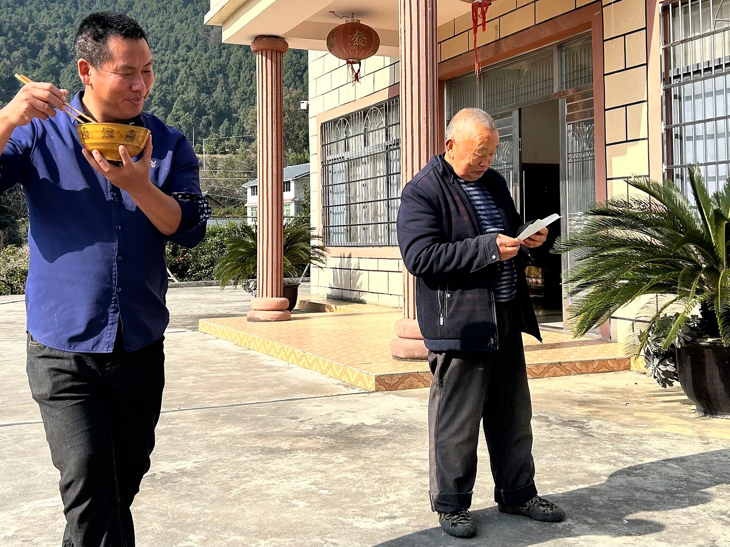 Since my previous visits had been spent mainly with elderly farmers like Grandma Lai and the Brother Zhangs, I’d specifically set out this time to speak with working-age people — a rarity, of course, in a major migrant-sending region like Qitian. Most of my interlocutors thus far had been former migrant workers in their forties and fifties who told me they’d only returned because injuries, illnesses, care obligations, or job market conditions had left them with little choice. Now trying to make enough money locally to support both ageing parents and young children—the familiar double-bind of 上有老,下有小, “old above and young below”—many were under palpable strain. This made for a very different type of conversation to the comparatively light small talk I was used to having with the grandpas and grandmas.