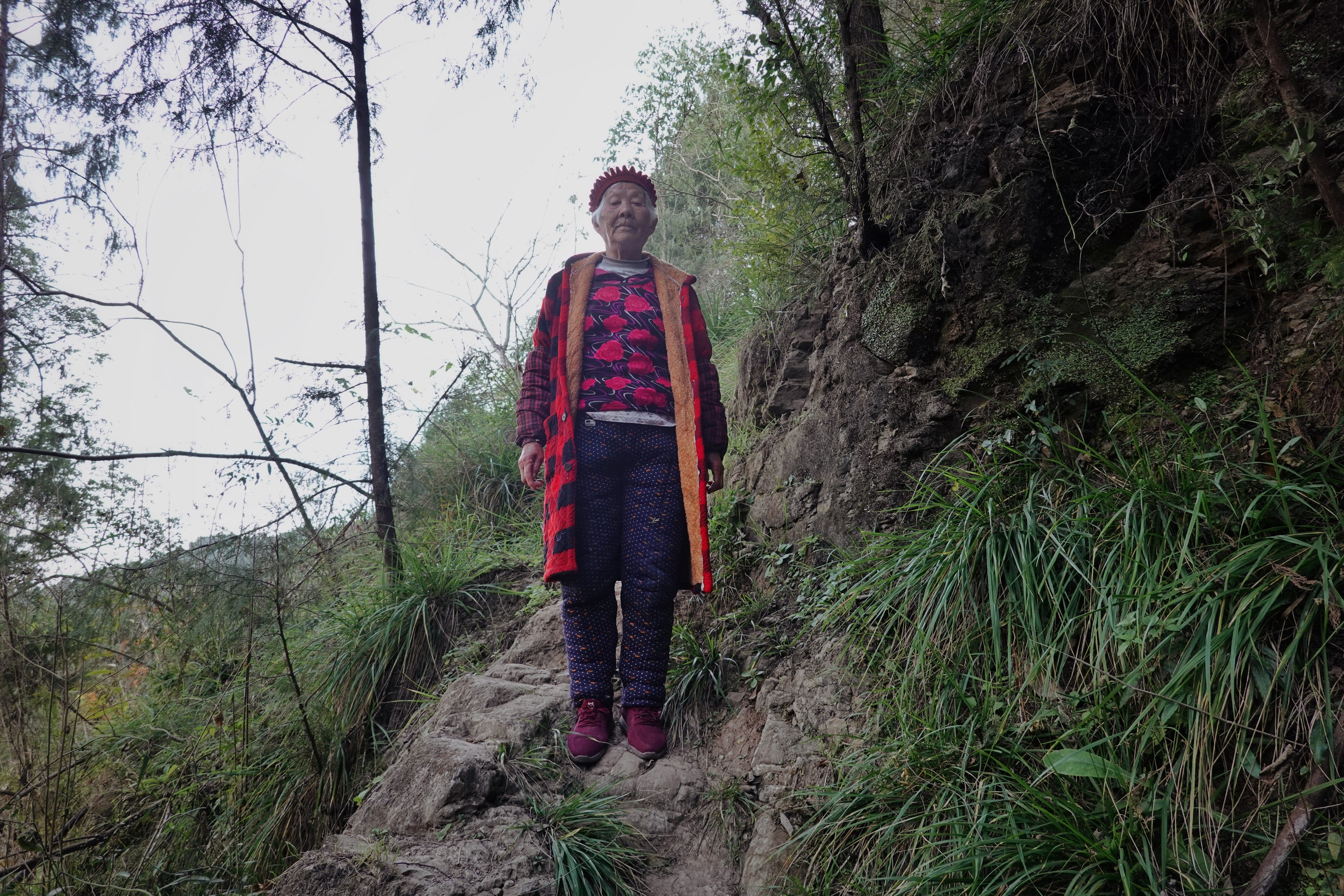 As we make our way down the final slope, a particularly steep one, I am so focused on watching my footing that only when I reach the bottom and turn around do I realise that Grandma Lai has stopped halfway.