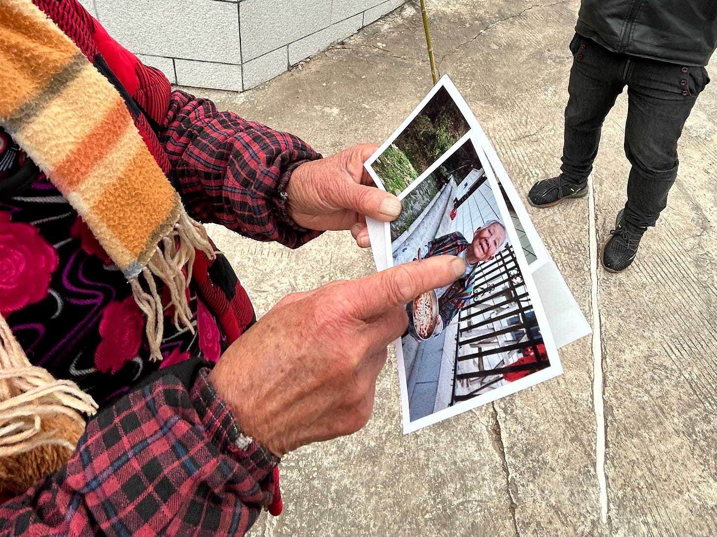 This is a reminder to myself as much as to all of you who engage with the stories of others, whether as photographers, writers, or researchers, to be more ambitious and imaginative about closing this loop. To remember that, given a certain positionality, taking an elderly Chinese farmer’s portrait may be flattering at best, extractive at worst. But bringing it back can be transformative.